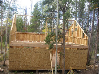 Sunday we sheeted both sides of the roof and were out of there about 5:30, in time to listen to the Red Sox game on the radio. What a lot of work but it feels good to have the roof on, and at least something to drain the rain. See more photos here : http://www.blackstarranchwy.com/